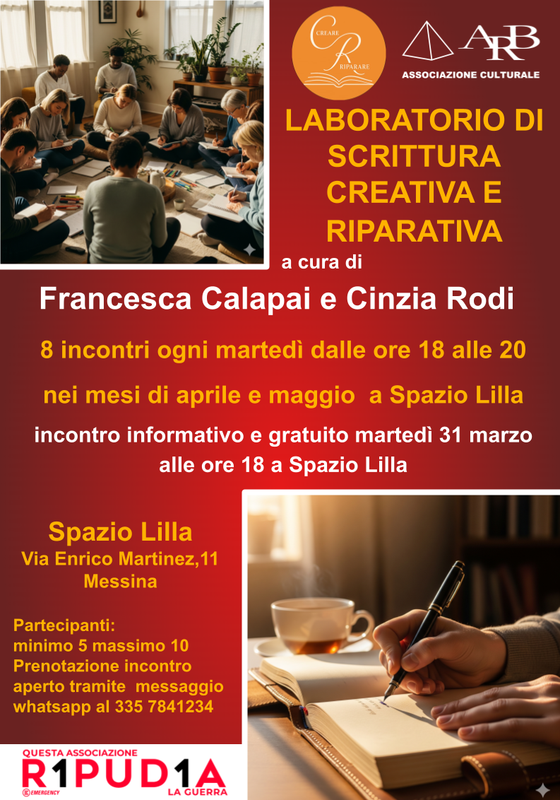 18:00 Incontro informativo gratuito per il Laboratorio di Scrittura Creativa e Riparativa, a cura di Francesca Calapai e Cinzia Rodi