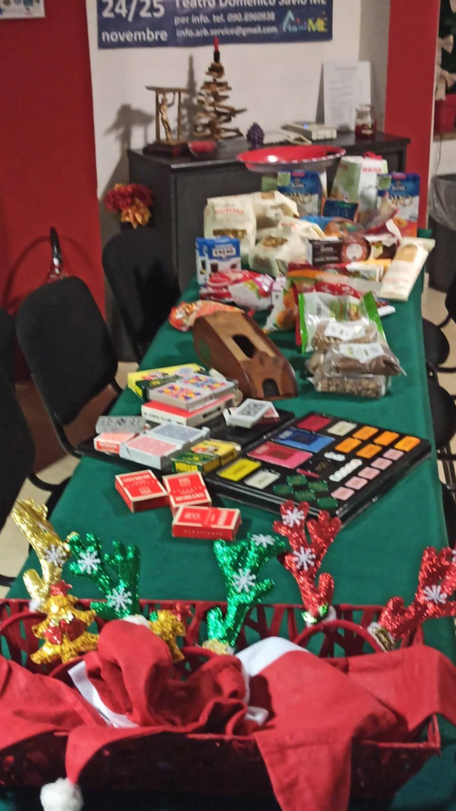 domenica prossima, 28 dicembre dalle ore 18 in poi, a Spazio Lilla organizziamo una tombola di beneficenza a favore di EMERGENCY e poi per divertirci insieme giocheremo a carte e organizziamo una “FOLLE TOMBOLA” (vedi regolamento) e infine brindisi per scambiarci gli auguri, (chi ha voglia di portare delle prelibatezze, può farlo) REGOLAMENTO “FOLLE TOMBOLA” 1) AMBO I SENSI Il secondo ambo prenderà il nome di ambo i sensi. In questo caso il giocatore fortunato deve scambiare un premio con un altro giocatore, che non può rifiutare. 2) TERNO STRAMBO E’ il secondo terno. Il giocatore fortunato deve destinare un premio alla folle tombola 3) DEA BENDATA Il giocatore che dopo la quaterna non ha vinto alcun premio, sarà omaggiato di un dono da parte del giocatore che ne possiede di più. N.B. il fortunato non può rifiutare 4) CINQUINA SANTA Dopo la cinquina, un giocatore se vuole disfarsi di un premio può farlo, solo se viene estratto un numero, presente sulla propria cartella, prima del tombolone o della folle tombola 5) TOMBOLE Sono previste due tipi di tombola (Entrambe ricche di premi) a) Tombolone b) Folle tombola REGOLE DEL BON-TON DEL GIOCATORE A) Ogni giocatore o coppia deve portare con sé almeno due regali, massimo quattro B) E’ vietato chiedere in prestito regali per giocare C) Sono esclusi dai regali come premi: Indumenti intimi indossati da un giorno o più, Cotton fioc ingialliti, Fazzolettini per il naso usati, Calzini o collant indossati da un giorno o più, Piatti di carta compostabili, di plastica o riciclabili sporchi e simili ecc. ecc. ecc. D) Alla fine del gioco, ogni giocatore o coppia riceverà un dono in omaggio per aver partecipato al gioco della “folle tombola” N.B. non può rifiutare RACCOMANDAZIONE: gli oggetti che porterete, per contribuire alla FOLLE TOMBOLA possono essere anche usati ma "attentamente selezionati."